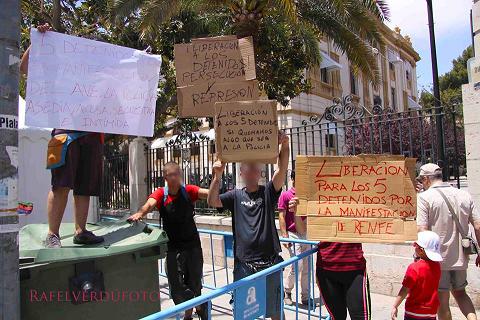 Tras conocerse la noticia de las detenciones un grupo de solidarios se ha concentrado frente a la comisaria de Benalúa, donde tenían a los detenidos. La policia los ha identificado, pese a lo cual ha habido gente todo el día frente a la comisaria y más tarde en los juzgados, cuando los detenidos han pasado a disposición judicial. Tras esto, los detenidos han quedado en libertad con cargos, teniendo que presentarse cada 15 días en el juzgado.