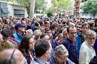 Miles de personas abarrotan la céntrica plaza para apoyar el referéndum catalán y contra la violencia de los represores nacionales
