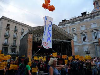 En la tarde de ayer un grupo de unas 100 personas se hizo presente y muy visible en el inicio de las fiestas de barcelona, mientras los políticos del ayuntamiento daban sus discrusos dentro del pregón. Lxs activistas portaban numerosas pancartas en las cuales reclamaban la absolución de Jona. Además, desplegaron una pancarta enorme en medio de la plaza, la cual era imposible de ignorar.