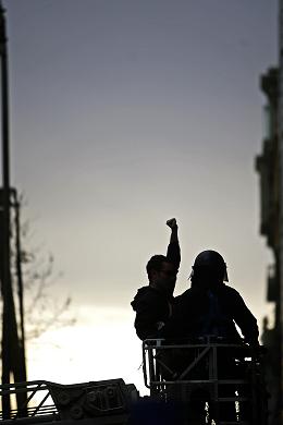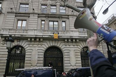 Esta mañana (por ayer) diversos estudiantes de han encadenado y colgado de la fachada de la sede del departamento de innovación, universidades y empresa de la Generalitat de Catalunya, mientras otros bloqueaban la entrada de este edificio, para denunciar la persecución que esta sufriendo el movimiento estudiantil contrario a la mercantilización de la educación.