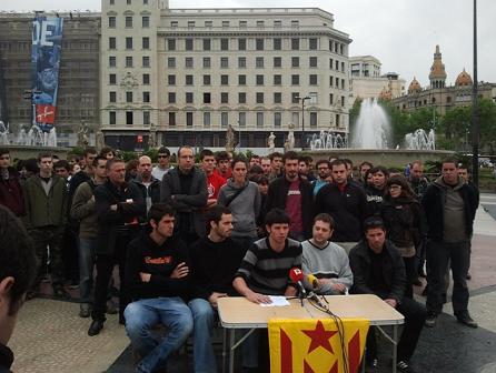 Rodeados por una veintena de representantes de las diferentes organizaciones de la Izquierda Independentista, entre los que concejales municipales de la CUP (Candidatura d'Unitat Popular), la rueda de prensa ha tenido lugar en el centro de la plaza Catalunya de Barcelona.