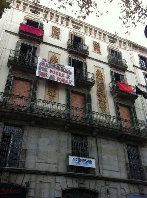 También esta semana, después de una manifestación contra los desahucios, se ha okupado una sucursal bancaria abandonada en el barrio del Example. Hoy día 18, en torno a las 8 y media de la mañana ha sido desalojada por seis furgonas de los Mossos d'Esquadra. Nueve personas están imputadas por un delito de "usurpación de bienes inmuebles".