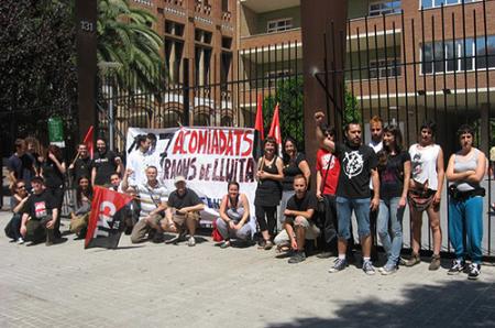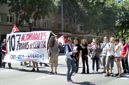 La CNT de Barcelona, que mantiene un conflicto abierto con la empresa de telemarketing Atento, del grupo Telefónica, la cual a principios de abril despidió a más de un 35% del personal que atendía las llamadas al teléfono 061 de emergencias médicas, convocó el sábado 5 de junio una concentración delante de las puertas del Departamento de Salud de la Generalitat de Catalunya. Asistieron unas 30 personas, las cuales cortaron el tráfico de vehículos en Travessera de Les Corts. Miembros de CNT de Zaragoza y la sección sindical de CGT en Atento, también participaron en el acto.