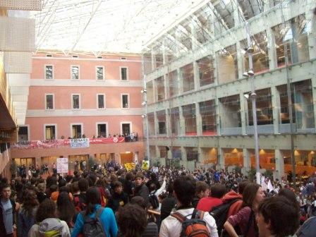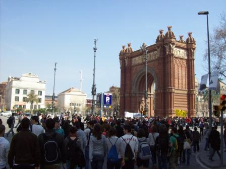 Convocada huelga universitaria contra el Plan Bolonia, hoy 12 de marzo, lxs estudiantxs han marchado en Barcelona desde Plaça Universitat llegando hasta el interior de la Universitat Pompeu Fabra.