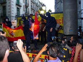 Por la tarde tuvo lugar la manifestación unitaria de la izquierda independentista, convocada por Maulets, Cajei, Endavant, el SEPC y Alerta Solidaria. Han participado alrededor de 8.000 personas, según indican, los compañeros de kaos en la red. La manifestación ha recorrido las principales calles del centro y ha acabado en el passeig del Born. Al comenzar se ha quemado una foto de los reyes, y al acabar se han quemado banderas españolas y francesas.