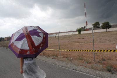 Rápidamente han sido todas ellas interceptadas por agentes de la Guardia Civil, precedidos por vehículos militares, e identificadas. Tras unos 20 minutos de espera, los agentes han hecho subir a los activistas en varios vehículos. Justo en el momento en que eran transportados hacia la base, se ha desatado una fuerte tormenta sobre la zona, con granizo incluido, en medio de la cual han sido desalojados los 10 activistas, a través de la salida trasera de vehículos de la base. Los efectivos de la base de despliegue rápido no encontraban las llaves de la puerta de salida, lo cual ha retrasado el desalojo. Es la segunda vez consecutiva que los y las inspectoras ciudadanas se introducen en el recinto principal de esta instalación de guerra, por puntos diferentes del perímetro de seguridad. Desde la primera edición de la “inspección ciudadana”, más de un centenar de personas han desobedecido la prohibición de entrar en el terreno militar, accediendo también por el campo de maniobras de la base.