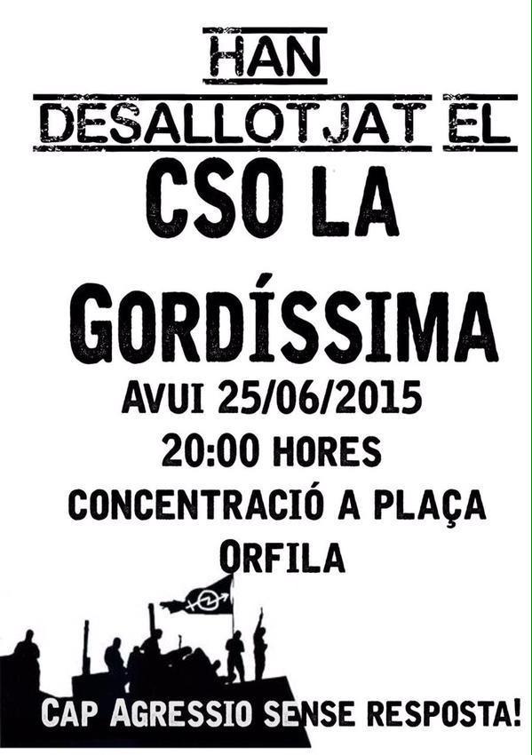 Avui a les 6 dela matinada, després de 6 anys i 7 mesos d’okupació, han desallotjat el CSO La Gordissima que portava temps en