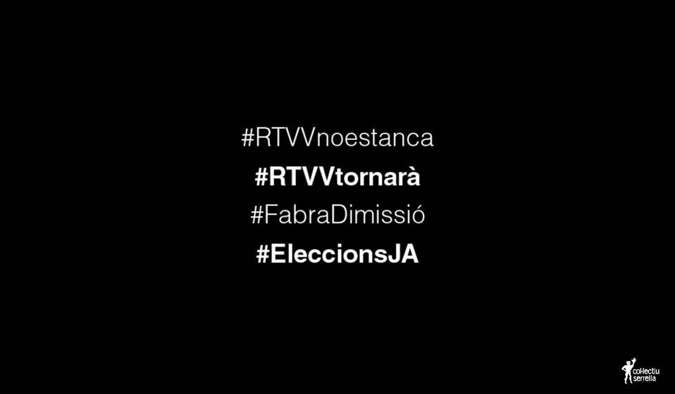 A les 12.19 d'aquest migdia l'emissió de Canal 9 se n'ha anat a negre. La comissió de liquidadors ha entrat a l'edifici acompanyada d'un gran dispositiu policíac, composat per Policia de la Generalitat i Policia nacional espanyola i ha tancat les emssions de la televisió pública valenciana, mentre els treballadors cridaven des del plató 'Fabra dimissió' i 'Açò és un cop d'estat'. Així és com el govern d'Alberto Fabra ha posat final a vint-i-quatre anys de RTVV. Abans de tot això, el jutjat d'instrucció número 1 de Paterna (l'Horta) havia ordenat el desallotjament immediat de les instal·lacions de Ràdio Televisió Valenciana a Burjassot. 'Si el desallotjament de RTVV no es produeix de manera immediata i voluntària, es produirà al desallotjament de l'edifici per la força policíaca', deia el TSJPV a través del seu compte de Twitter.