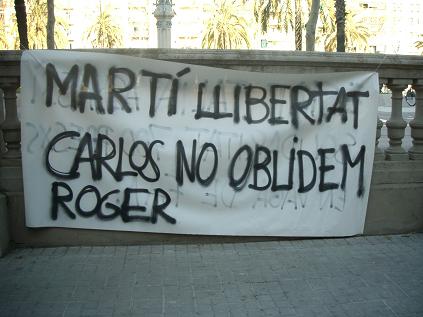 Finalmente, alrededor de las 14:30h fue puesto en libertad sin fianza y con los cargos de atentado a la autoridad, desórdenes públicos y lesiones. En el atestado policial se le acusa de agredir a varios mossos en la manifestación antifascista del pasado día 17 en respuesta por la muerte de Carlos. De esta manera, el poder responde con otro golpe represivo a la ola de solidaridad que se ha mostrado desde que un nazi cometiera el asesinato el pasado 11 de noviembre.
