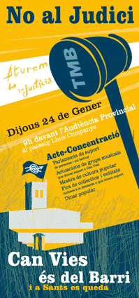 Se aproxima la fecha del juicio (para los días 24 y 25 de enero en la Audiencia Provincial de Barcelona) y desde el Can Vies están haciendo llamamientos de solidaridad para evitar el desalojo y derrumbe de este espacio autogestionado con 10 años de vida como parte activa de colectivos de base e individualidades, siendo numerosas las experiencias sociales, comunicativas, artísticas, culturales, políticas, etc.