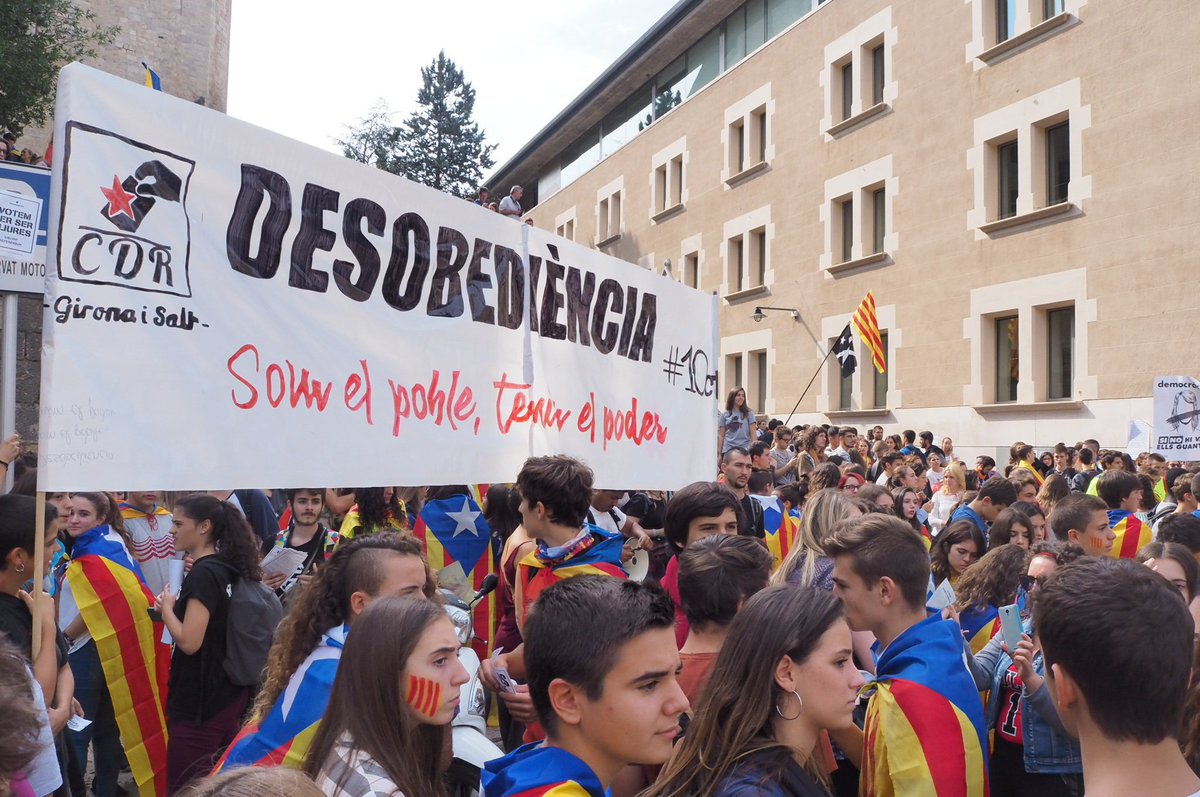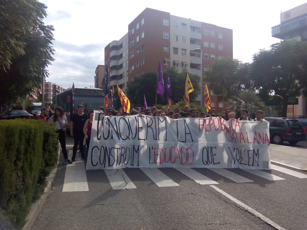 Grupos de estudiantes se han manifestado esta mañana en toda Catalunya en defensa del referéndum del 1 de octubre, por la libertad de tod@s l@s detenid@s y exigiendo el fin de la escalada represiva.