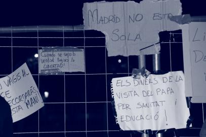Madrid no estás sola. Ni Madrid ni todas las localidades de Europa y el mundo que cada día albergan más indignación ante la cada vez mayor injusticia social y corrupción de esta sistema al que llaman democrático pero que controlan unos pocos. Algunos ya lo veían pero un día, el 15M sucedió. Nos juntamos y para el poder eso supone un problema mayor que el de verdad importa y ante el que no plantean solución mejor que el seguir subyugándonos a una dictadura de la mentira de los mercados, de la deuda y las agencias de riesgo, del capital, de la crisis…