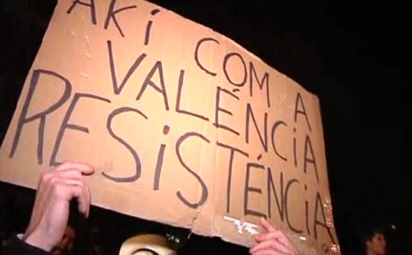 La protesta, convocada a través de las redes sociales, estaba encabezada por miembros del Espaci País Valencià. La manifestación que ha comenzado en la Plaça de Catalunya ha bajado hasta la Plaza de Sant Jaume.
