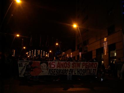 Esta manifestación fue convocada por familiares y amigxs de Pedro Álvarez, 15 años después de que éste resultara asesinado por un policía. Tras una discusión de tráfico entre Pedro y su asesino, éste, un policia nacional vestido de paisano, acabó sacando un arma y disparando en la cabeza a Pedro, lo cual le provocó la muerte. El policía fue detenido, y tras 7 días en los que permaneció encerrado, fue puesto en libertad debido a que según el juez las pruebas no eran suficientes para demostrar la autoría del asesinato. A partir de ello la familia de Pedro emprendió una lucha para, por un lado, que el asesino se le aplicara la ley, y por otro, para denunciar la impunidad policial.