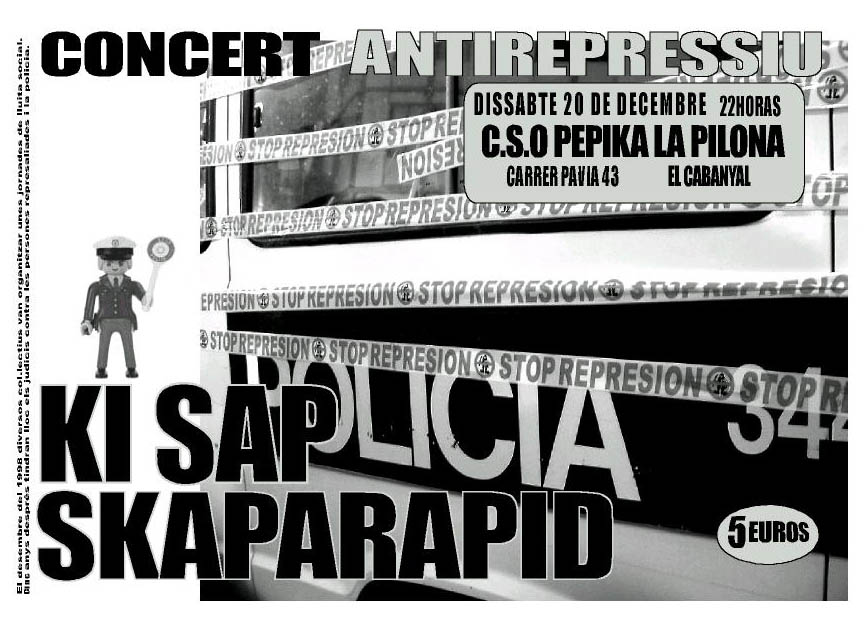 Todavía no hay fecha de juicio, aunque se espera que sea para febrero o marzo. Para el 20 de diciembre se ha convocado un concierto con la intención de ir recaudando fondos para la defensa legal. Tocarán Ki Sap y Skaparapid y será a las diez de la noche en el C.S.O Pepika la Pilona ( calle Pavia 43 del Cabanyal).