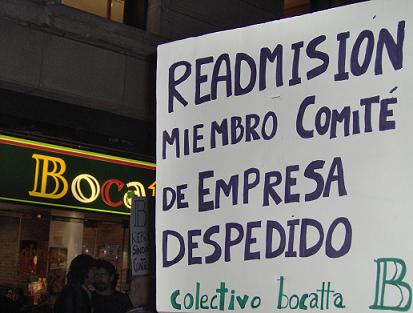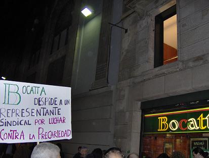El pasado viernes 2 de marzo unas 45 personas se concentraron delante del local de Bocatta de la calle Santa Ana para exigir la readmisión de un representante sindical que fue despedido el pasado 28 de diciembre por luchar contra la precariedad laboral y por el cumplimiento del Convenio.