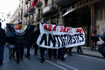 Movilización Antifascista en Barcelona ante la presencia fascista de Vox por el 6 diciembre