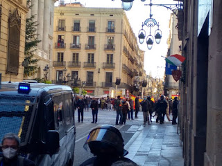 12:00h Antifascistas a punto de entrar en Plaça de Sant Jaume. Grandes momentos de tension con los Mossos.