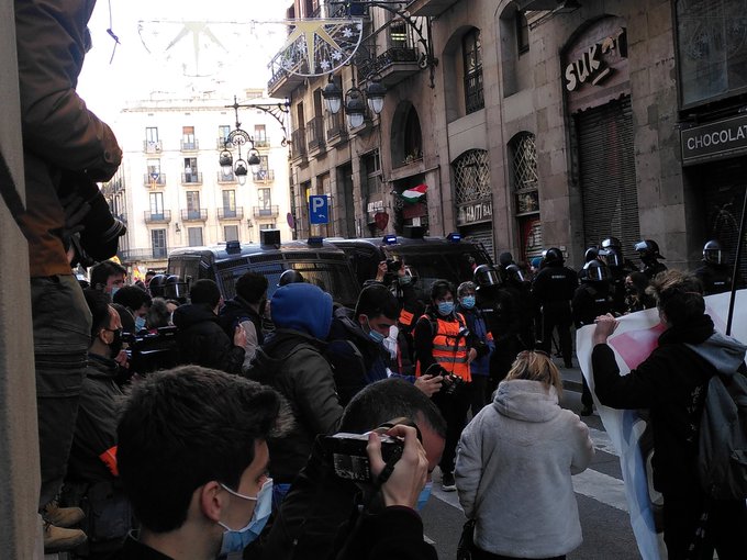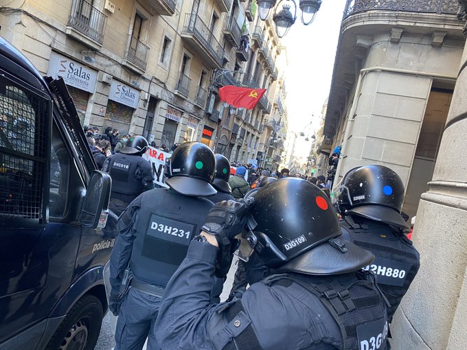 11:30h Varios cientos de Antifascistas se movilizan en BCN ante la presencia fascista de Vox. Fuerte presencia de Mossos.