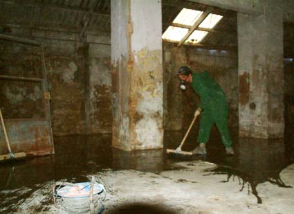 Currando, limpiando.
