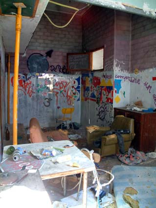 Hay mucho trabajo de limpieza y desinfección, pero el sitio está bastante bien a pesar de que hay algunas partes que deben ser apuntaladas y arregladas. Varias vecinas y vecinos se han acercado a las puertas y han hablado con los okupas quienes les han invitado a participar del futuro Centro Social. También han aparecido por la mañana una pareja de policías municipales que han amonestado a los okupas por llenar los contenedores de basura del barrio.