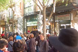 La noticia se tenía desde el día anterior, pero ya había sido convocado un desayuno concentración para visibilizar el desahucio. Allí acudieron unas cincuenta personas solidarias y los medios de comunicación de masas, la abogada y miembros de la assamblea contra el mobbing contaron como habían conseguido parar el desahucio y la concentración se convirtió en una celebración.