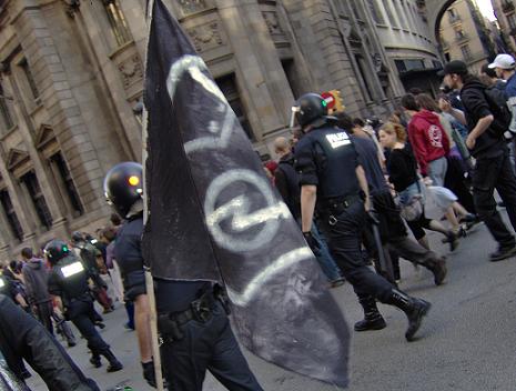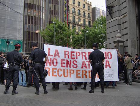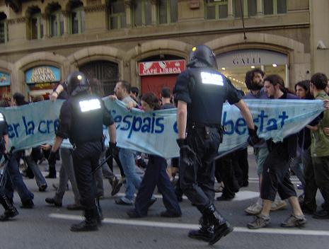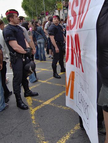 Fotografias de la manifestación, en las que se muestra el nivel de represión que los mossos y su responsable político, Saura, han decidido llevar a cabo ayer contra las 1.500 personas que pretendían manifestarse.