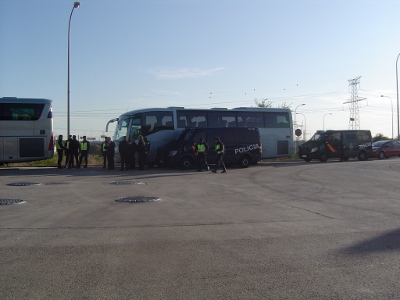 07.15.- Alcala Meco. Dues furgonetes d'antidisturbis i dos agents de paisà han aturat l'autocar i, com és habitual en aquestes ocasions, han identificat a tots els acompanyants. Han registrat a una persona i han inspeccionat l'autocar.