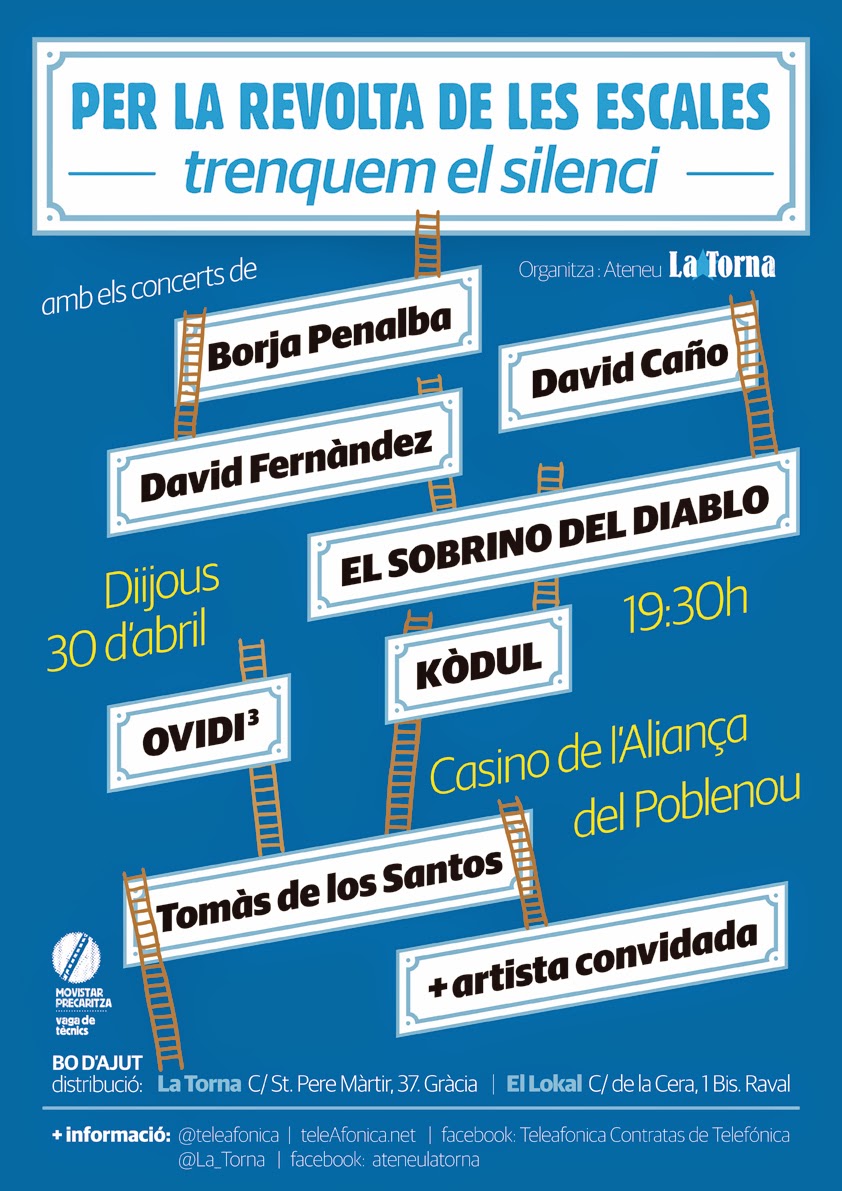 El jueves 30 de Abril, al Casino l'Aliança del Poble Nou, tenemos un concierto cuya recaudación íntegra pasará a formar parte de nuestra caja de resistencia. Adjuntamos cartel también.