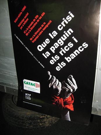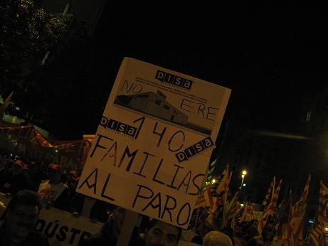 Como contrapartida desde diferentes secciones sindicales, delegados y trabajadorxs de empresas en conflicto como Simón, FRAPE, Frigo, Delphi, Magnetti, Marelli, Sintermetal, Nissan, Pirelli, amenazados con peticiones de expedientes de regulación, apoyados por la Xarxa contra els Tancaments i la Precarietat, han creado un bloque alternativo en la manifestación de hoy, con un discurso propio. De hecho, al final del recorrido, mientras los líderes burócratas hablaban a lxs manifestantes en un escenario montado para la ocasión, el bloque alternativo se ha quedado en medio de la Via Laietana, haciendo su propio acto de clausura de la manifestación. Han hablado trabajadorxs de diferentes empresas en conflicto. Un miembro de la plantilla de SEAT y miembro de CGT, ha comunicado que varios trabajadorxs han recibido llamadas de la empresa diciendo que mañana no vayan a trabajar, lo cual podría significar que la generalitat ha aceptado el ERE que afecta a 750 puestos de trabajo, que se verían suspendidos durante dos meses.