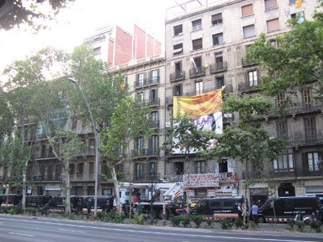 22:30: ¡Un desalojo, otra okupación! Se ha okupado como respuesta otro edificio en Gran Via 452, hay gente apoyando la ocupación desde fuera. Se llama a la solidaridad. El edificio es bastante similar al que han desalojado esta mañana y está en muy buen estado.