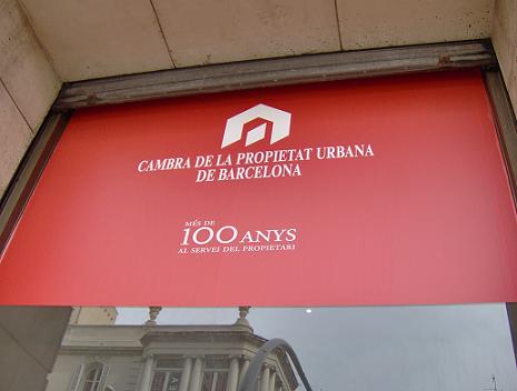 En la mañana de hoy se ha relizado una acción contra la cámara de la propiedad de Barcelona, para conmemorar el 100 aniversario de esta institución, que presume de protejer los intereses de los propietarios.