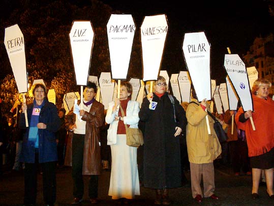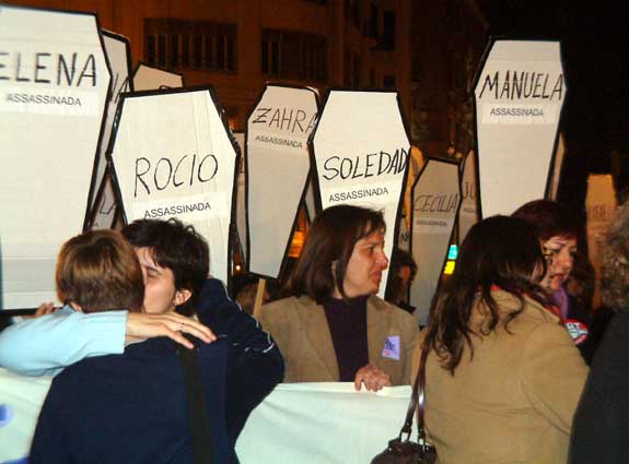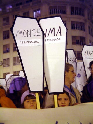 Ataudes de cartón recordando a las mujeres asesinadas por sus maridos