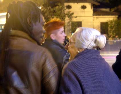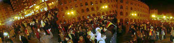 Tres fotos del momento en que la mani pasa por el mitin del PP en lplaza de toros