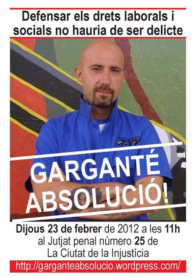 Concentracio: dijous 23 de febrer a les 11 al Jutjat penal 25 de la Ciutat de la Injusticia.